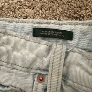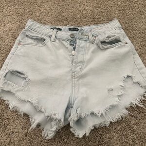 These stylish distressed denim shorts are perfect for a casual day out. Featuring a light blue color, they offer a trendy and comfortable fit.