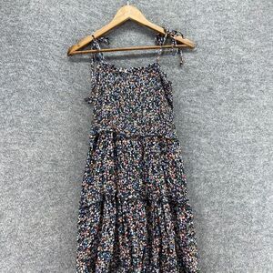 Wild Fable Dress Women XS Black Floral Shift Midi Sleeveless Rayon Square Neck