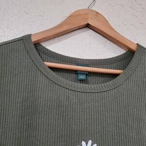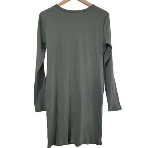 Wild Fable Dress Womens XL Y2K Green Ribbed Knit Long Sleeve White Flower Retro