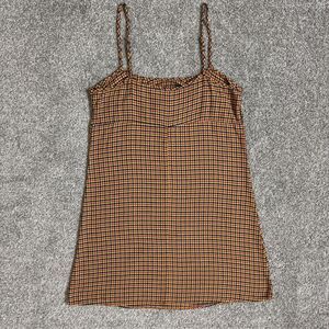 Wild Fable Dress Womens XS Brown Plaid Mini Cami Slip Spaghetti Strap Babydoll