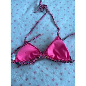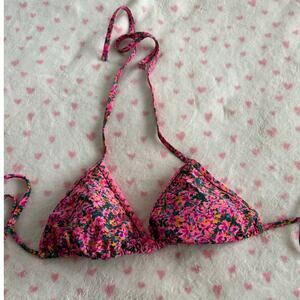 Wild Fable Floral Crochet Trim Triangle Pink Multicolor String Bikini Swim Top M