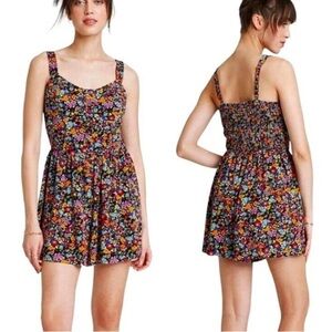 Only worn a couple of times. Features stretchy and flattering smocking at the bust with detailed stitching. Lightweight and flowy with a bold floral print. Perfect for summer outings or layering with a jacket for cooler weather!