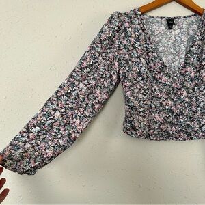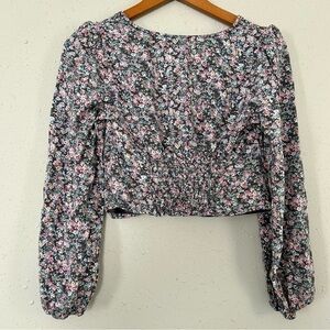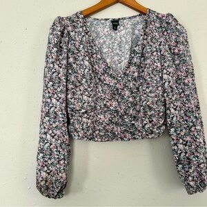 🦋 Wild Fable Floral V-Neck Long Sleeve Cropped Blouse Medium Spring