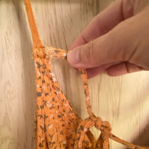 Wild Fable tiered swing dress with woven lace like straps and edge and yellow Floral pattern with avocado green leaves. Sz Medium. So cute with a jean jacket and boots. Note: there is a string that attaches on the back from one string to the other. It has come off in one side and it would need to be reattached or the other side taken off too.