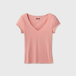 Wild Fable girl's short sleeve, stretchy v-neck top. Peach Punch Size L. Gorgeous coral color!