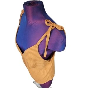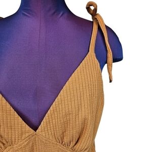 In excellent condition Wild Fable Golden Mustard Waffle Knit Spaghetti Strap Bodysuit Size XXL.