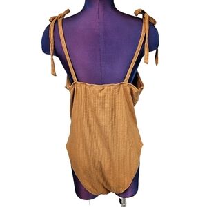 Wild Fable Golden Mustard Waffle Knit Spaghetti Strap Bodysuit Size XXL