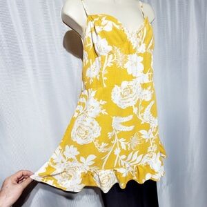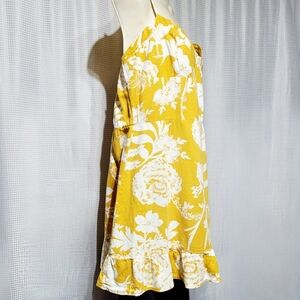 Wild Fable Golden Yellow Floral Ruffled Mini Dress (XL) An adorable golden yellow and white floral dress with ruffled bottom and adjustable strap.