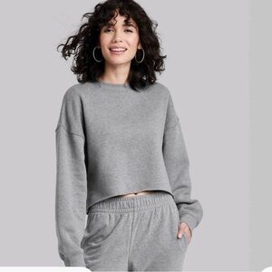 Wild Fable Gray Cropped Boxy Fleece Crew Neck Sweatshirt