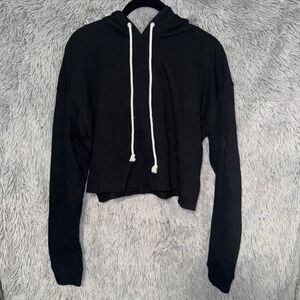 Chic and comfortable hoodie. Cropped. Features a drawstring hood. Ideal for layering. Looks great with jeans and leggings. Perfect for running to gym, errands or lounging. Measurements in photos.