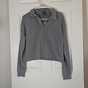 Wild Fable Gray Cropped Polo Collar 2 Button Lightweight Sweatshirt Size M