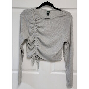 Wild Fable Gray Sleeve Ruched Slim Fit Cropped Knit Shirt Heather Grey Size XL
