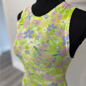 Wild Fable Green Mesh Drawstring Ruched Floral Swim Cover Up Dress (XS)