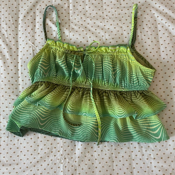 Wild Fable Green Patterned Ruffle Top