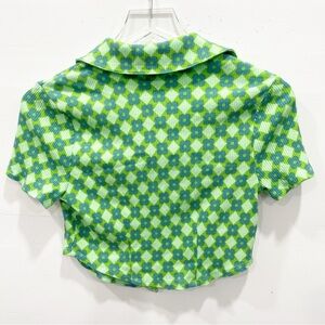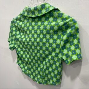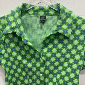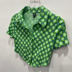 Wild Fable Green Ribbed Retro Button Down Crop Shirt Top