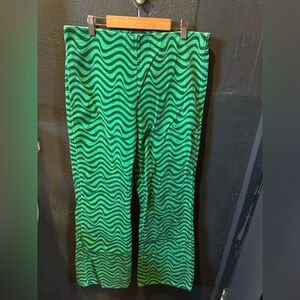 Vibrant pants with a striking green and black design. Ideal for making a statement. They are in like new condition