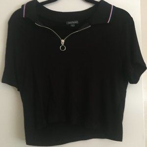 Wild Fable Half Zip Black Polo Crop Shirt