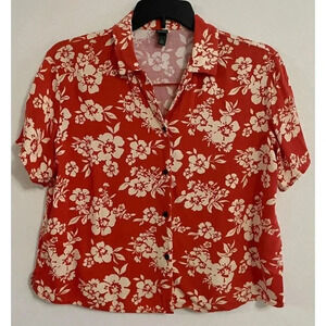 Wild Fable Hawaiian Shirt Womens Size M Rayon Multicolor Floral Short Sleeve