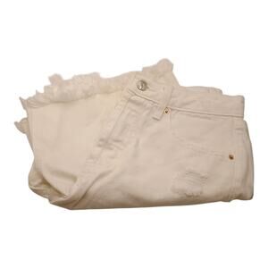 New without tags please review the photos measurements are in them. The Wild Fable High Rise Bermuda Shorts in size 4 are a stylish addition to any woman's wardrobe. These denim shorts are distressed have button fly and have a raw hem, adding a modern twist to a classic Bermuda style. With a comfortable 11-inch rise and a 7-inch inseam, these shorts are perfect for casual or travel occasions. Made from 100% cotton with a 5-pocket design, they provide both style and practicality. The white color and solid pattern make them versatile for any season, while the button fly adds a touch of vintage charm. Machine washable and with no stretch, these shorts are a must-have for any fashion-forward woman.