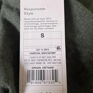 Brand new with tag, never worn, Wild Fable, high rise, stretchy, charcoal gray, stretchy, activewear, athletic, 56% cotton 38% recycled polyester & 6% spandex, please see pictures for approximate measurements of waist, bottom hem leg opening & inseam