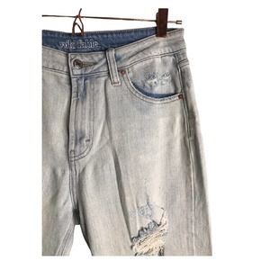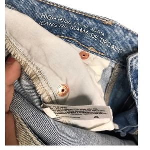 Great condition with last photo showing only flaw minor mark price reflects majorly bundle for great discounts and I ship same day! High rise mom jeans light blue distressed holes all over
