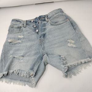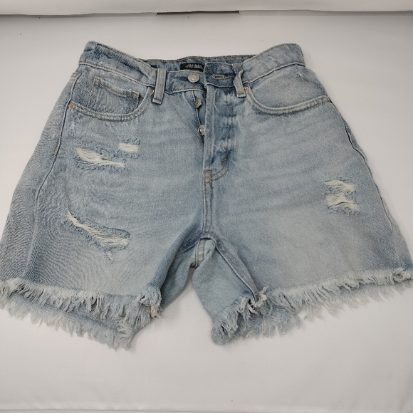 Super high rise cut off shorts. 3 buttons at waist and 5 pockets.