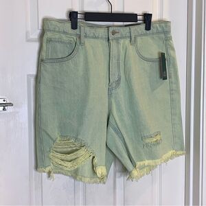 Wild Fable High Rise Bermuda Shorts Distressed Green Yellow Size 14