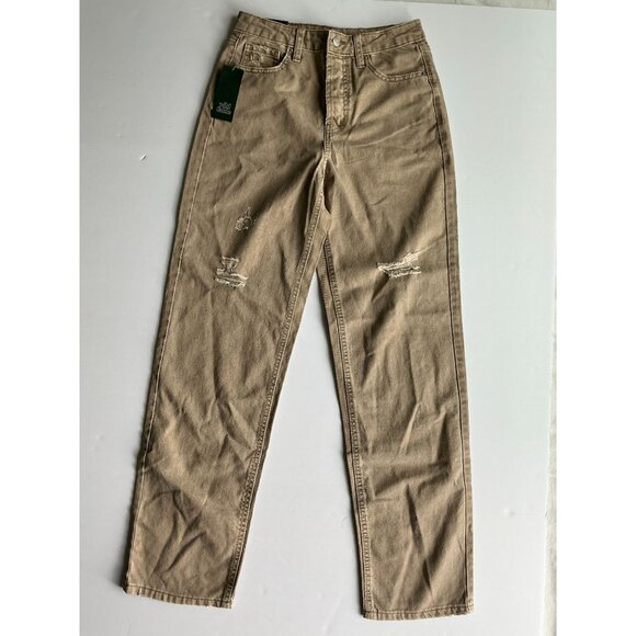 Wild Fable High-Rise Straight Jeans Women's Size 2, 32" Inseam, EasyRigid Stretch, Tan Distressed