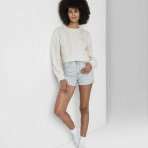 Wild Fable jean shorts. Made of 98% cotton, 2% elastane, these jean shorts have a light acid washed with a folded hem Highest rise is 12 inches. 2 slash pockers and 2 back pockets. Get ready for summer 😎 now!