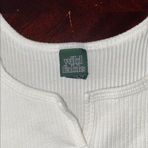 Ivory ribbed tank top with scoop neck. Sleeveless design by Wild Fable. It’s a junior medium and fits like adult XS