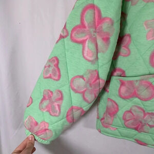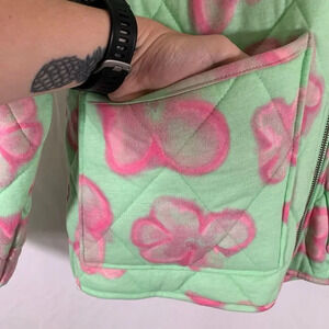 Wild Fable Jacket Women's Small Green Floral Quilted Full Zip Hooded Pockets