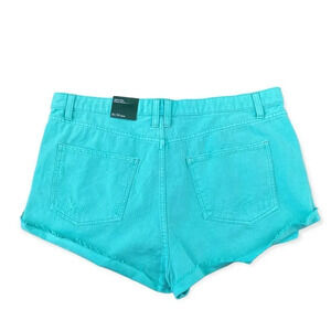 Wild Fable "Highest Rise Cheeky Shorts" Sizes 12 and 18 in teal or blue/green. Measurements for the size 12: 32" waist, 12" rise and a 2" inseam. Size 18 measurements: 39" waist, 12" rise and a 2" inseam.