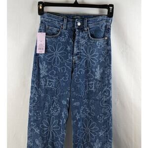 Wild Fable Jeans Doodle Print Super High Rise Straight Medium Wash 00 Casual 90s