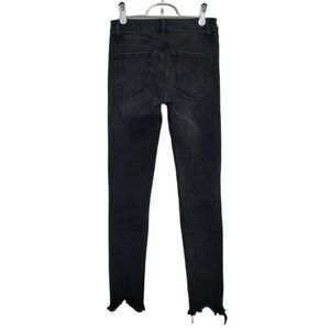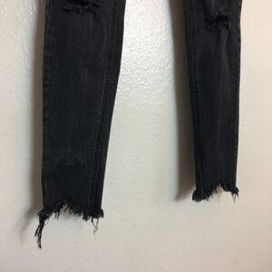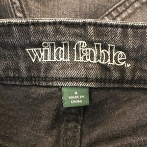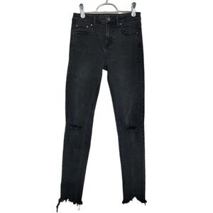 Wild Fable raw hem, cropped ankle jeans, in a faded black or gray wash, with distressed knees (holes, rips). Women's Size 0. Measures approximately 26x26, with a 9.5" rise. Cotton & Spandex blend. Additional distressing and fading from the previous owner.