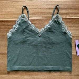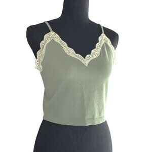 Wild Fable Junior Green Lace Trim Ribbed Crop Top With Adjustable Strap Size XXL