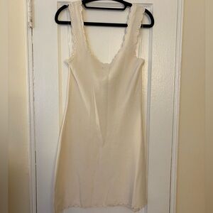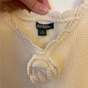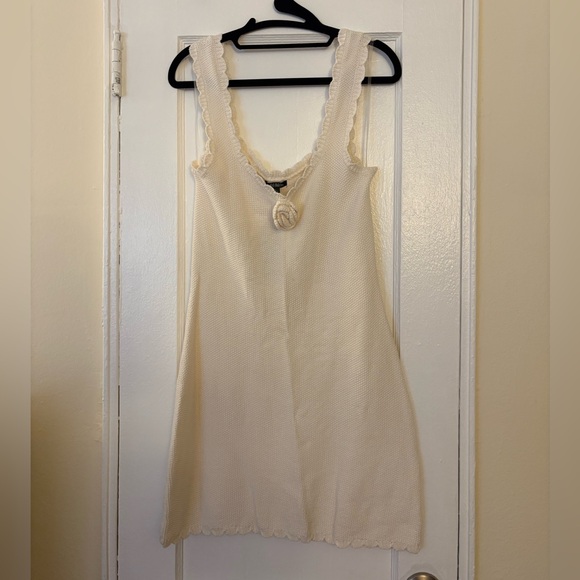 Wild Fable cream knit dress with scalloped edges and flower detail.