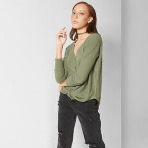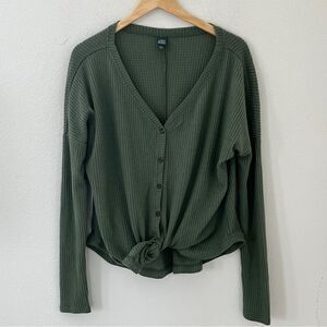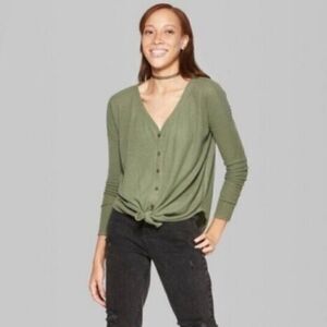 Wild Fable Knot Front Waffle Knit Thermal Top Size Medium Olive Green