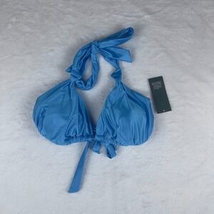 Wild Fable Knotted Halter Bikini Top Womens Medium Shiny Blue Removable Cups