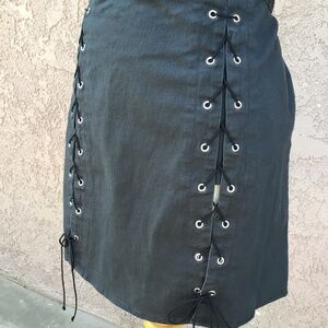 Both sides have a small inner fabric at top of where it laces to not show too much