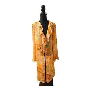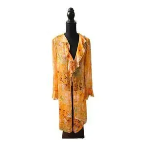 Wild Fable Ladies Orange Floral Print Sheer Long Sleeves Cover-Up Size Multiple