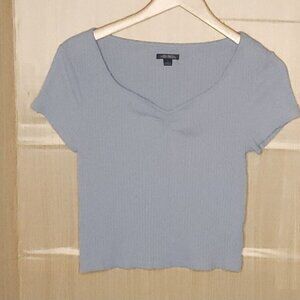 Wild Fable Light Blue Cropped Ribbed Short Sleeve Top Medium