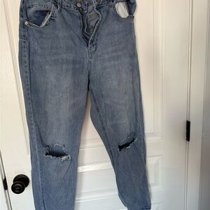Trendy high-rise jeans with a light blue wash. Ideal for everyday style.