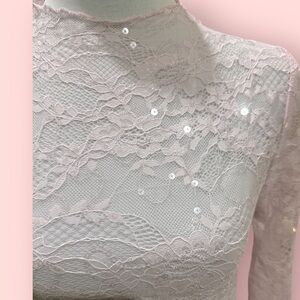 • Style: Long sleeve sheer lace top with floral pattern and sequin accents