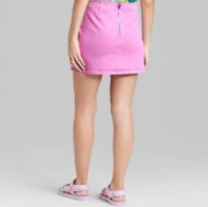 Wild Fable light purple stretch denim skirt in a mini-length silhouette. Denim fabric with a hint of stretch provides flexible comfort that moves with you. Mid-rise waist with a back zipper for ease of wear. Stitched seam detail with a notched front accent completes the look with additional flair.