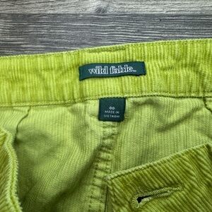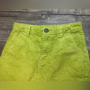 Lime green corduroy skirt with stylish button accents. Ideal for casual wear.