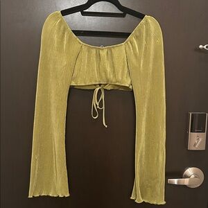 This stylish olive green top features a flattering design with a unique front tie detail.