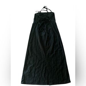 This elegant black dress features a stylish strappy back design, perfect for any occasion. Its sleek silhouette offers a flattering fit, making it a must-have addition to your wardrobe.