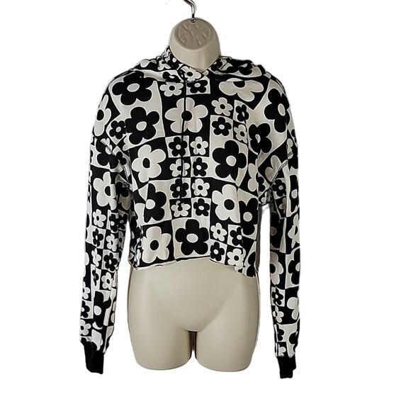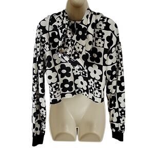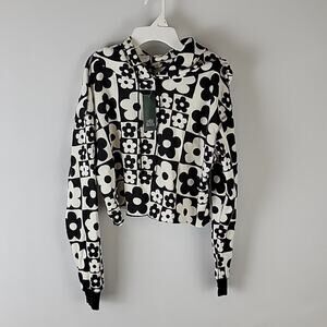 Wild Fable black and white floral check print long sleeve crop hoodie, size M, new with tags, 60% cotton/40% polyester, machine wash cold, tumble dry low