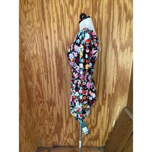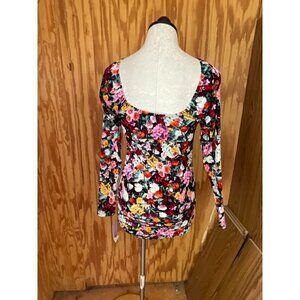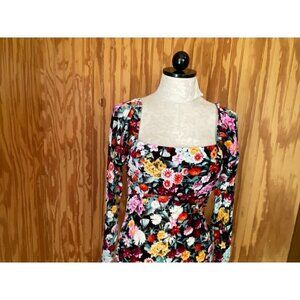 Wild Fable Long Sleeve Floral Mini Dress Botanical Aloha Hawaiian Square Neck XS