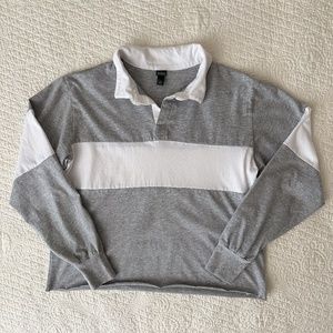 Wild Fable Long Sleeved Oversized Rugby Polo Shirt Gray White